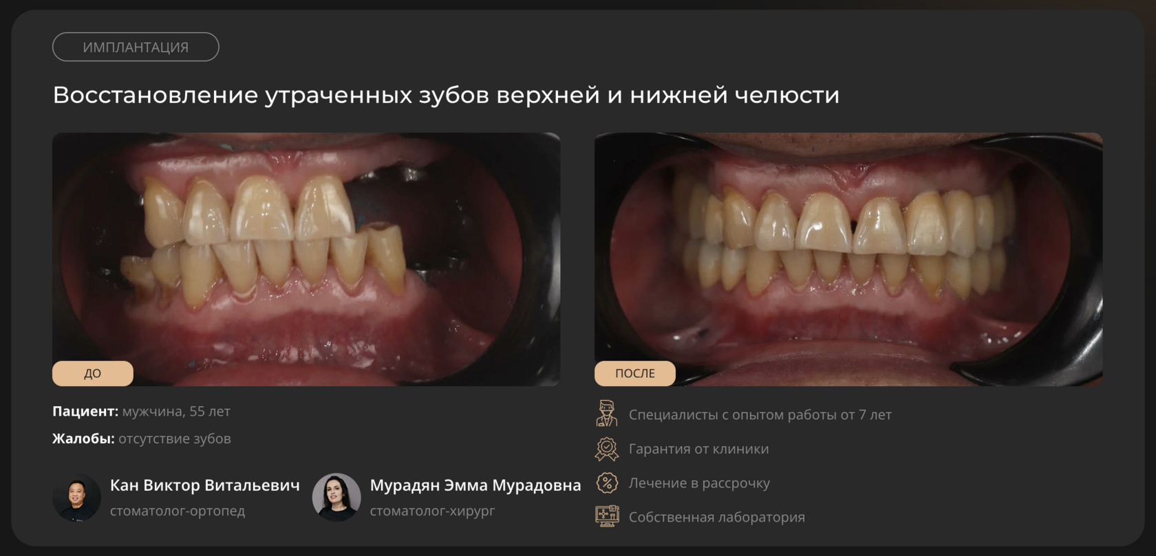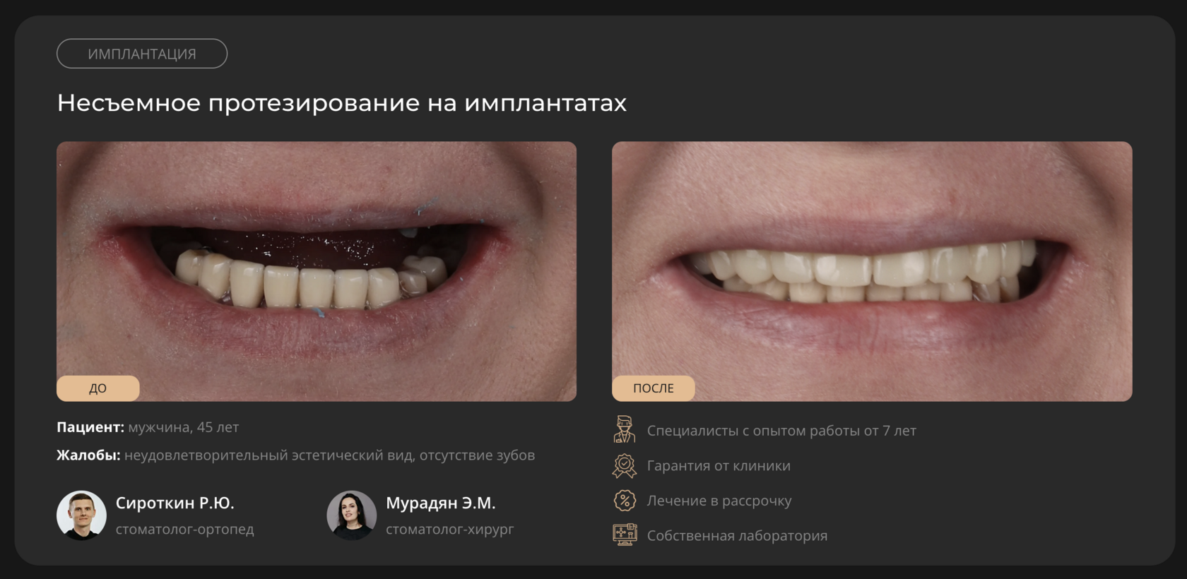 - Провели более 1000 успешных операций по имплантации;